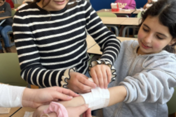Onze klassen krijgen elk jaar een gastles over EHBO (voor groep 8 incl reanimatie). Hierbij leren ze over veelvoorkomende verwondingen, de stabiele zijligging en het aanleggen van verbanden.