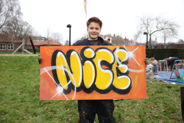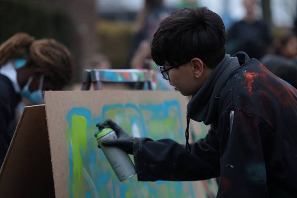Groot feest tijdens de laatste activiteit van de Weekendschool op 14 december! Alle groepen gingen creatief bezig. Met het maken en schilderen van kleurrijke kerstlichtjes en ze gingen aan de slag met graffiti! Alle leerlingen kregen een gastles en een workshop en konden zo hun eigen kunstwerk creëren.