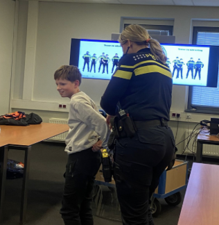 We zijn bij het politiebureau geweest. Hier kregen wij uitleg en een rondleiding van twee politie agenten. Wij mochten alles vragen aan de agenten, bekijken hoe een politieauto er nou van binnen uitziet en wij mochten een wapenstok vasthouden. Die bleek nog best wel zwaar!